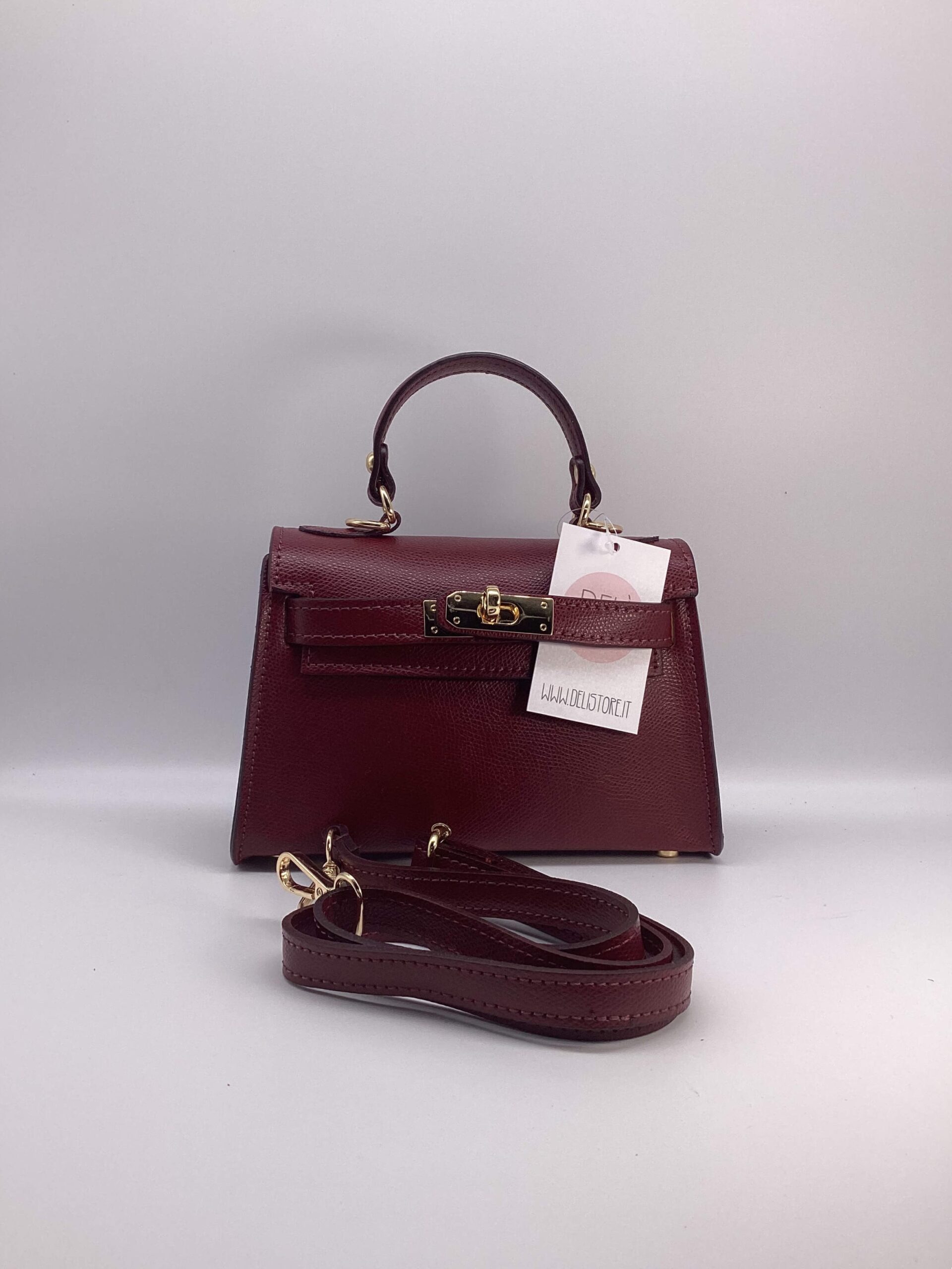 Manico e tracolla regolabile inclusa. Dettagli color oro.