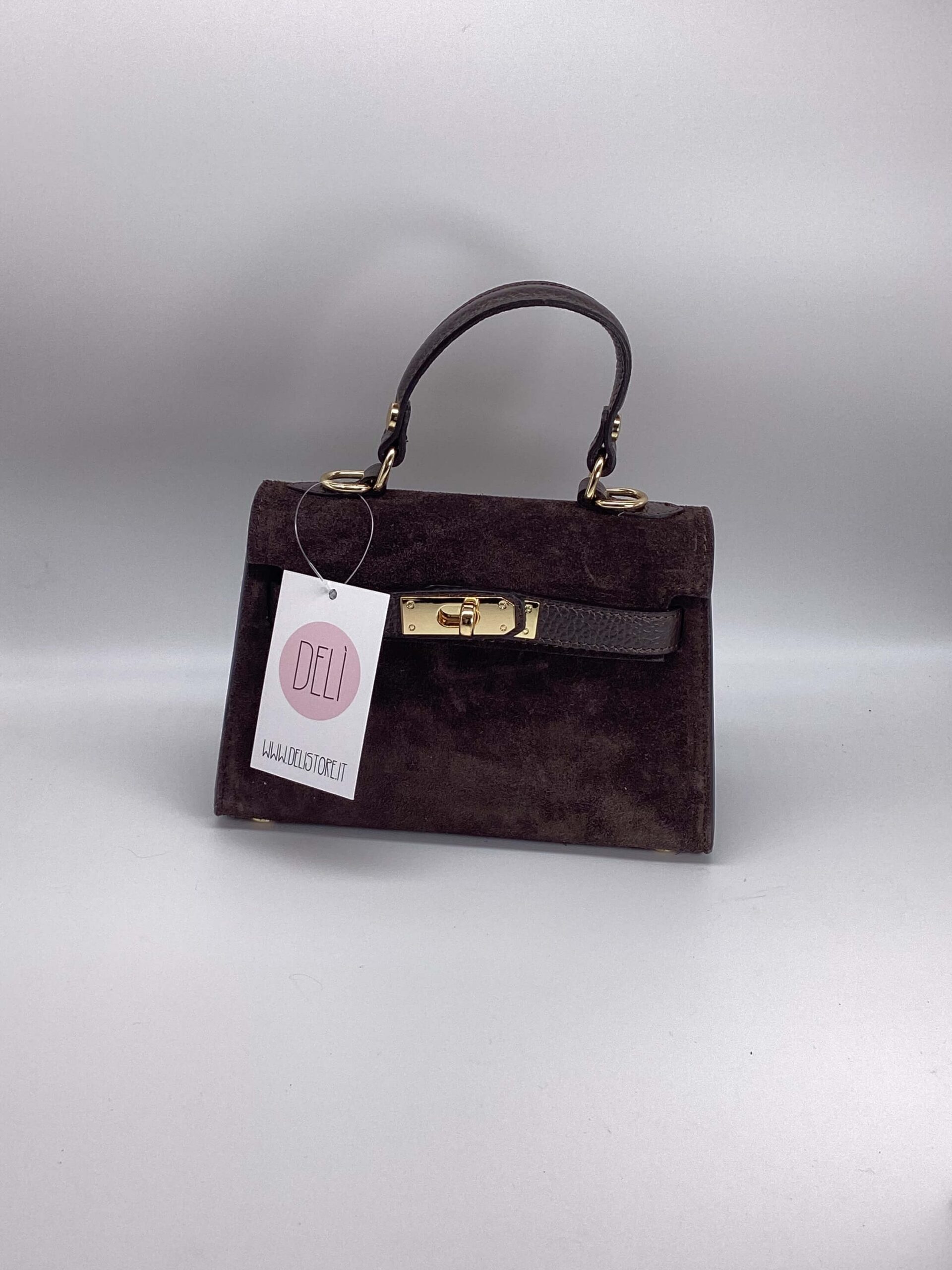 Borsa in pelle scamosciata.