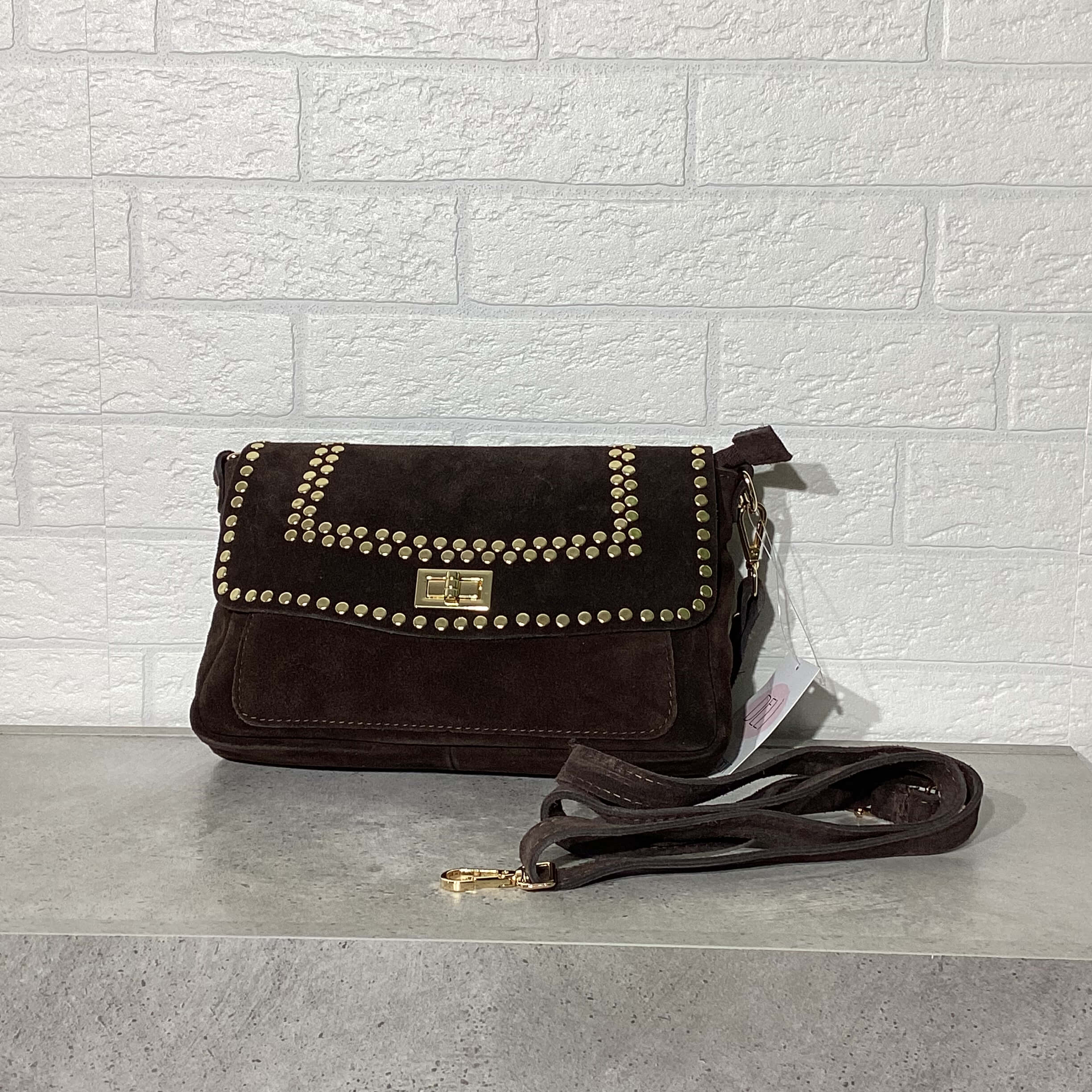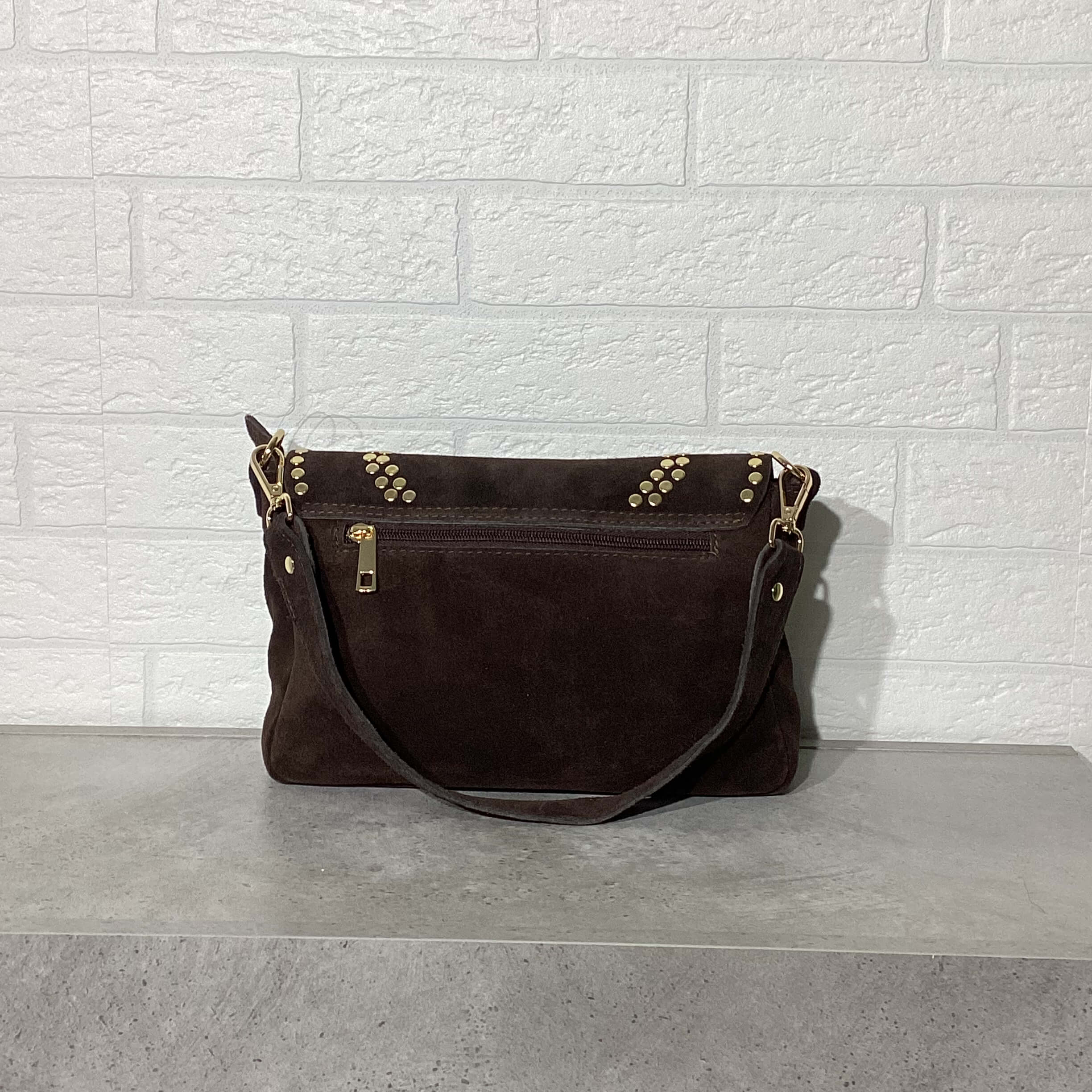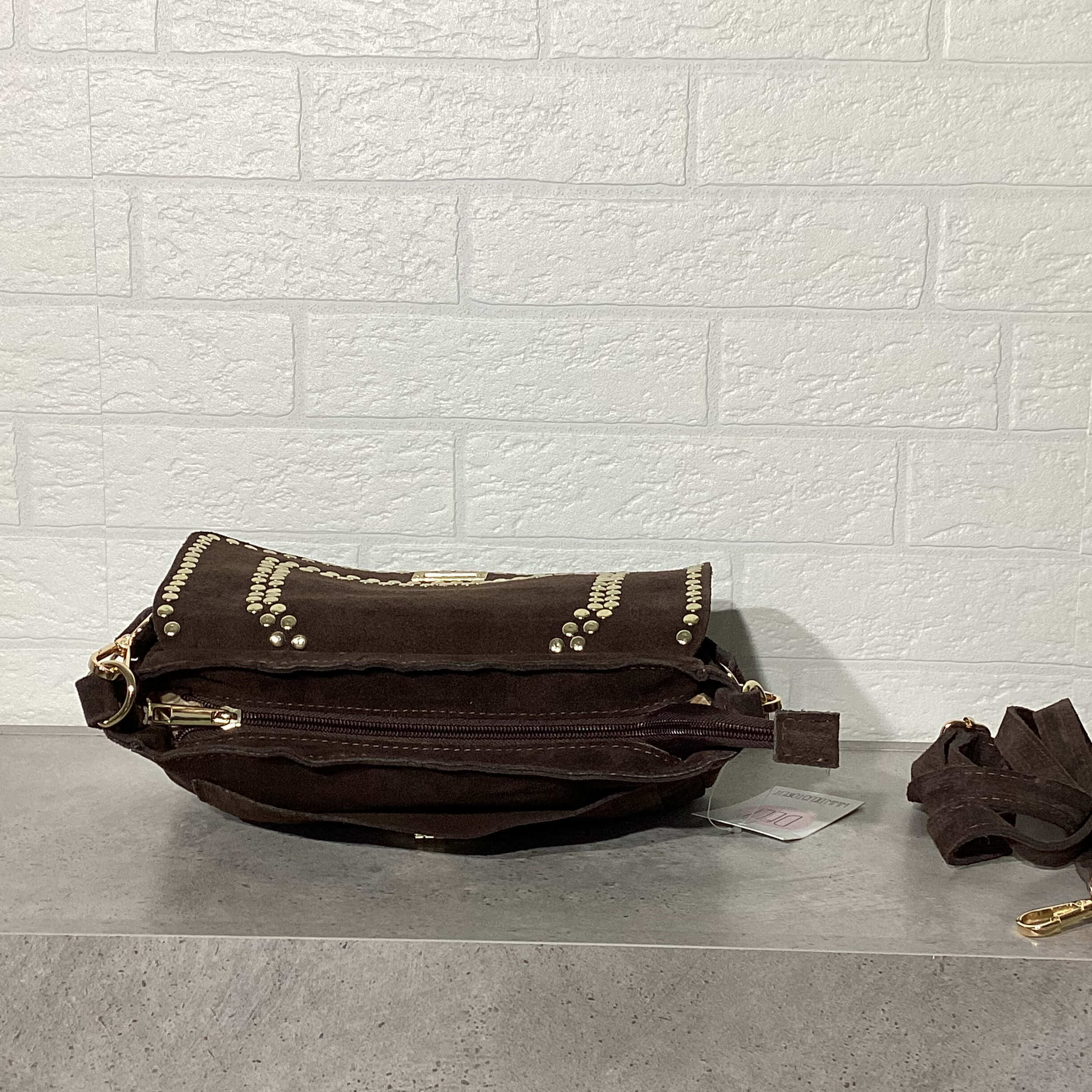 Borsa in pelle scamosciata.