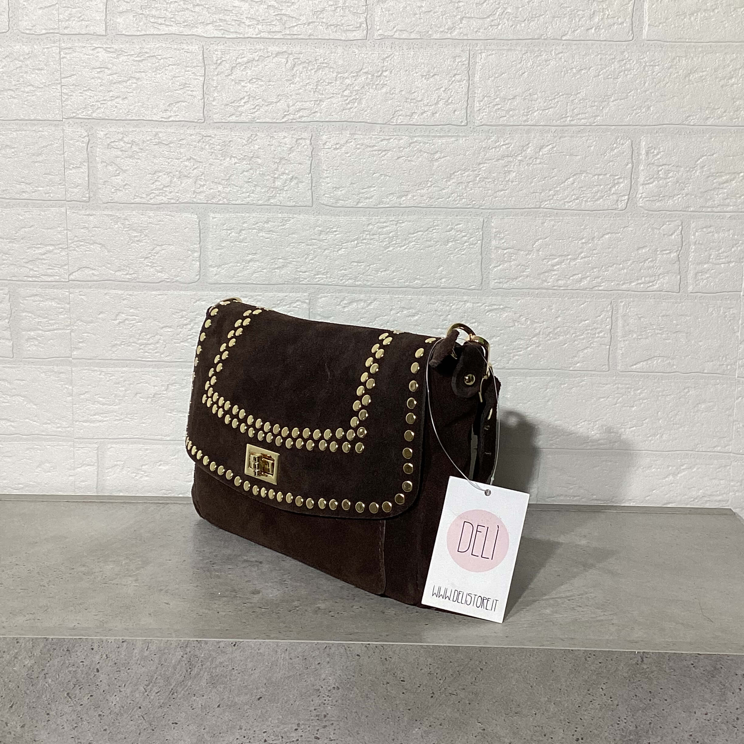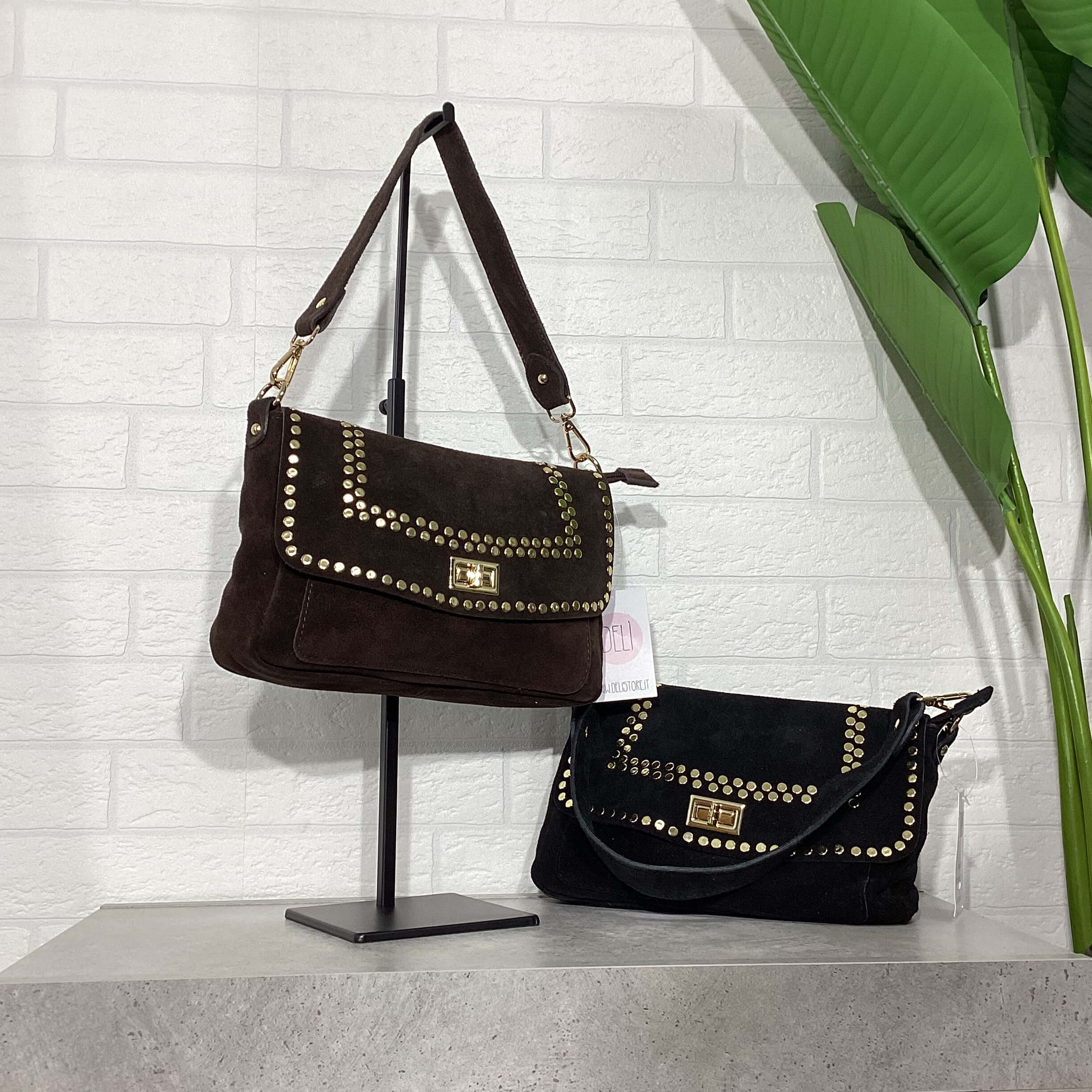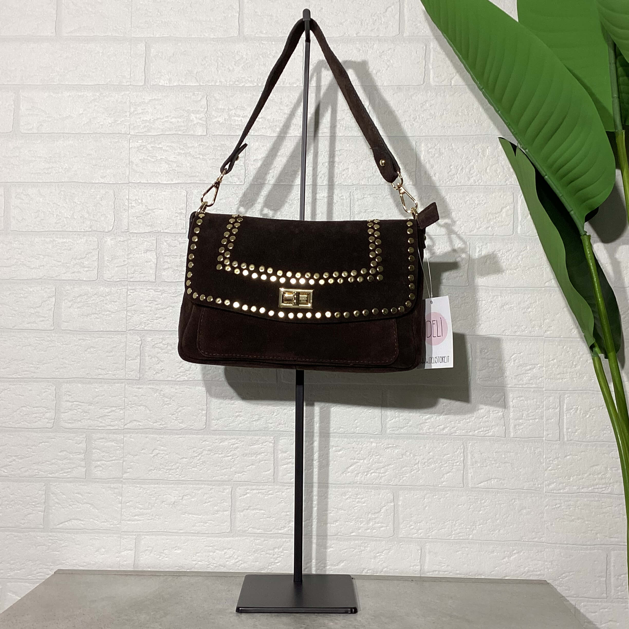 Borsa in pelle scamosciata.