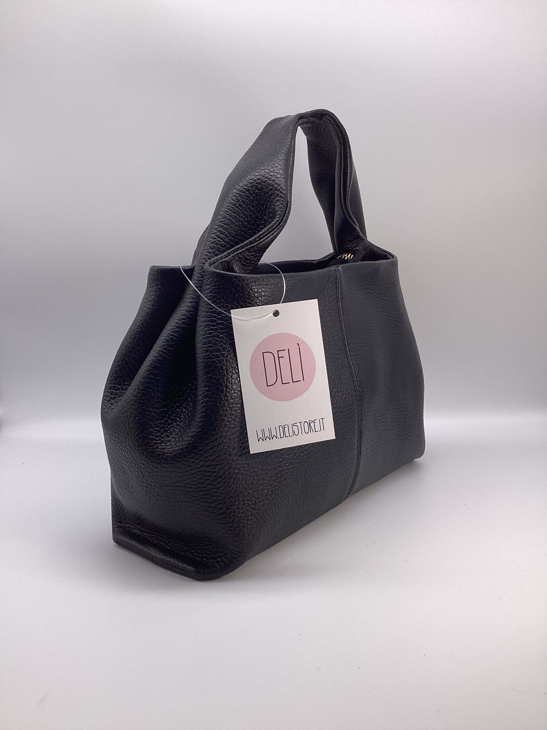 Borsa in pelle, chiusura con cerniera.