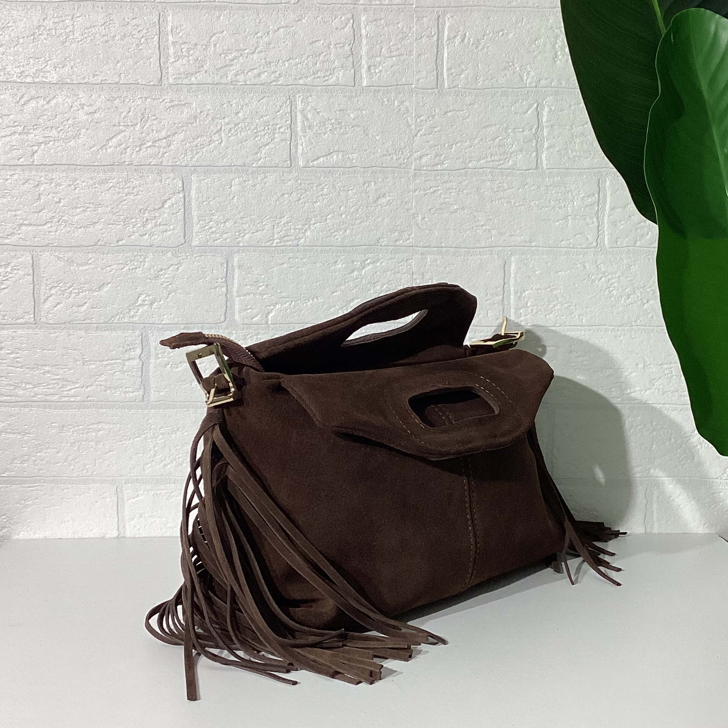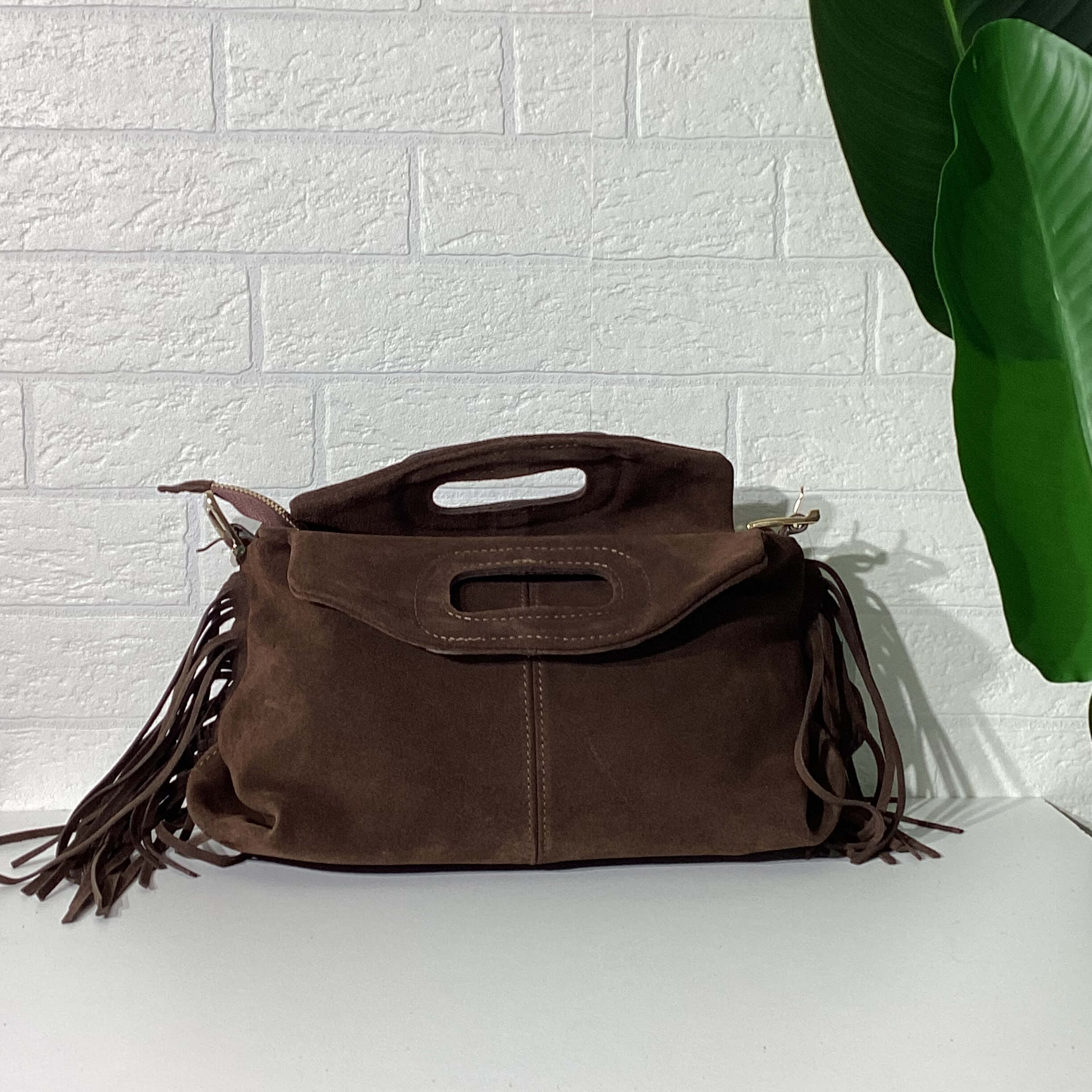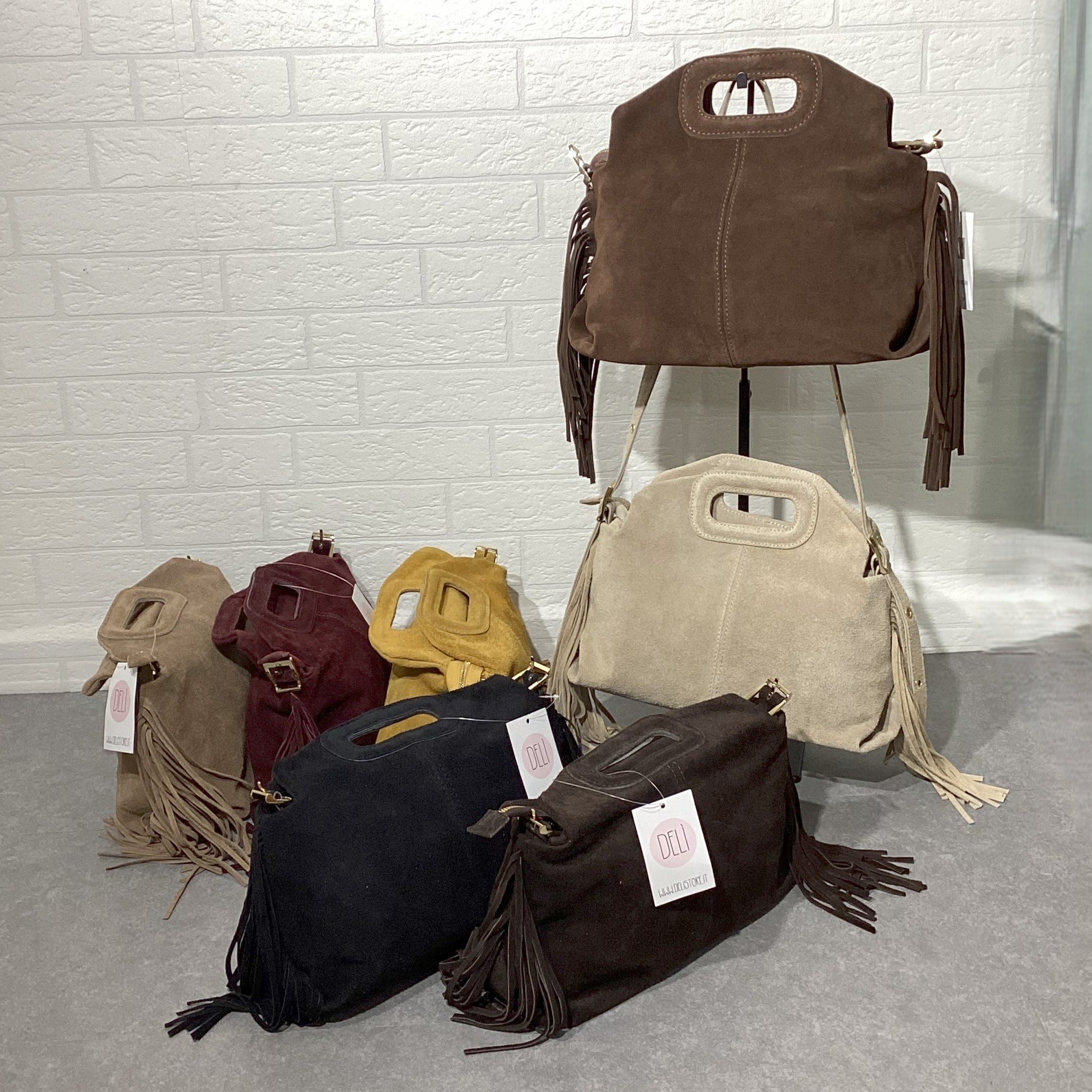 Borsa in vera pelle scamosciata.