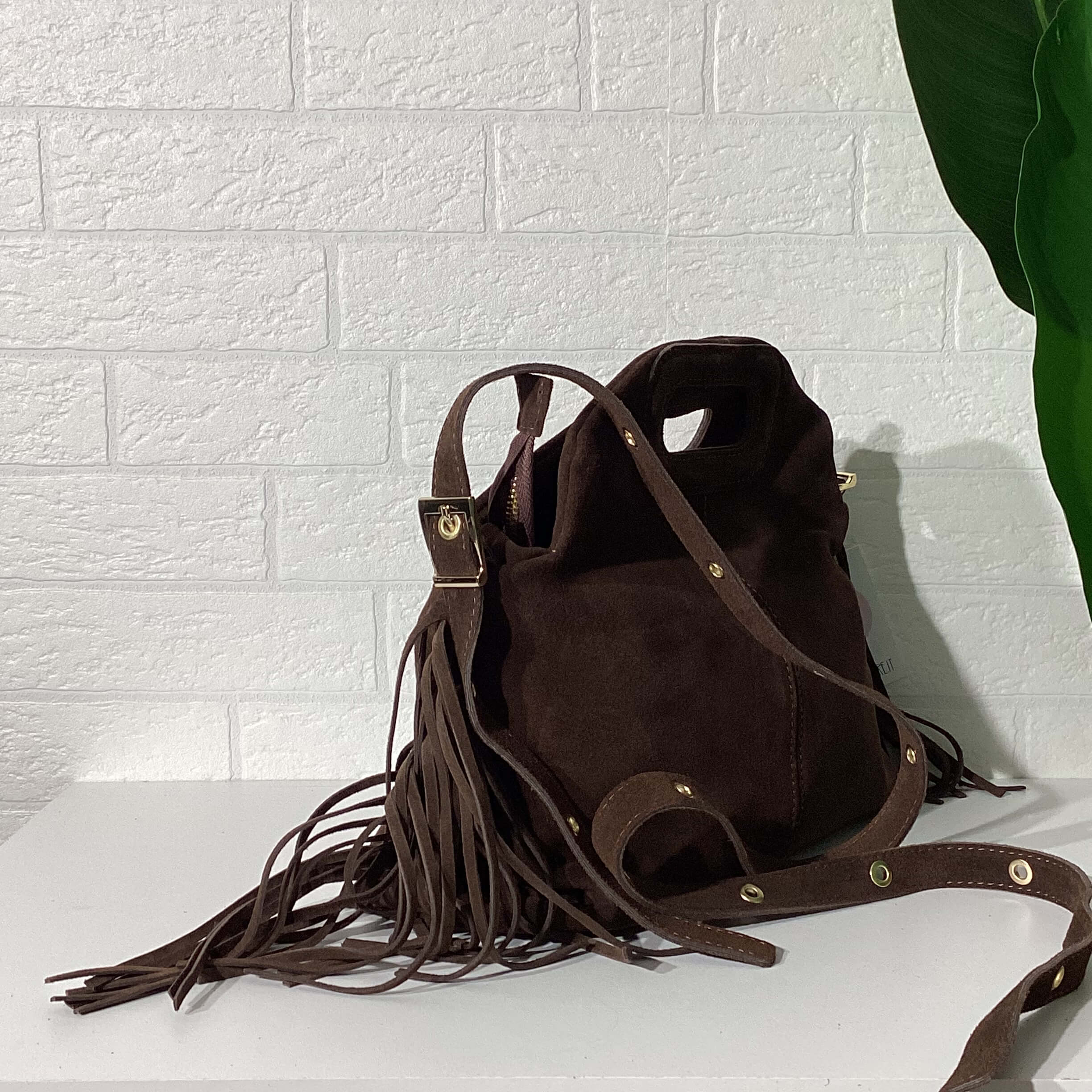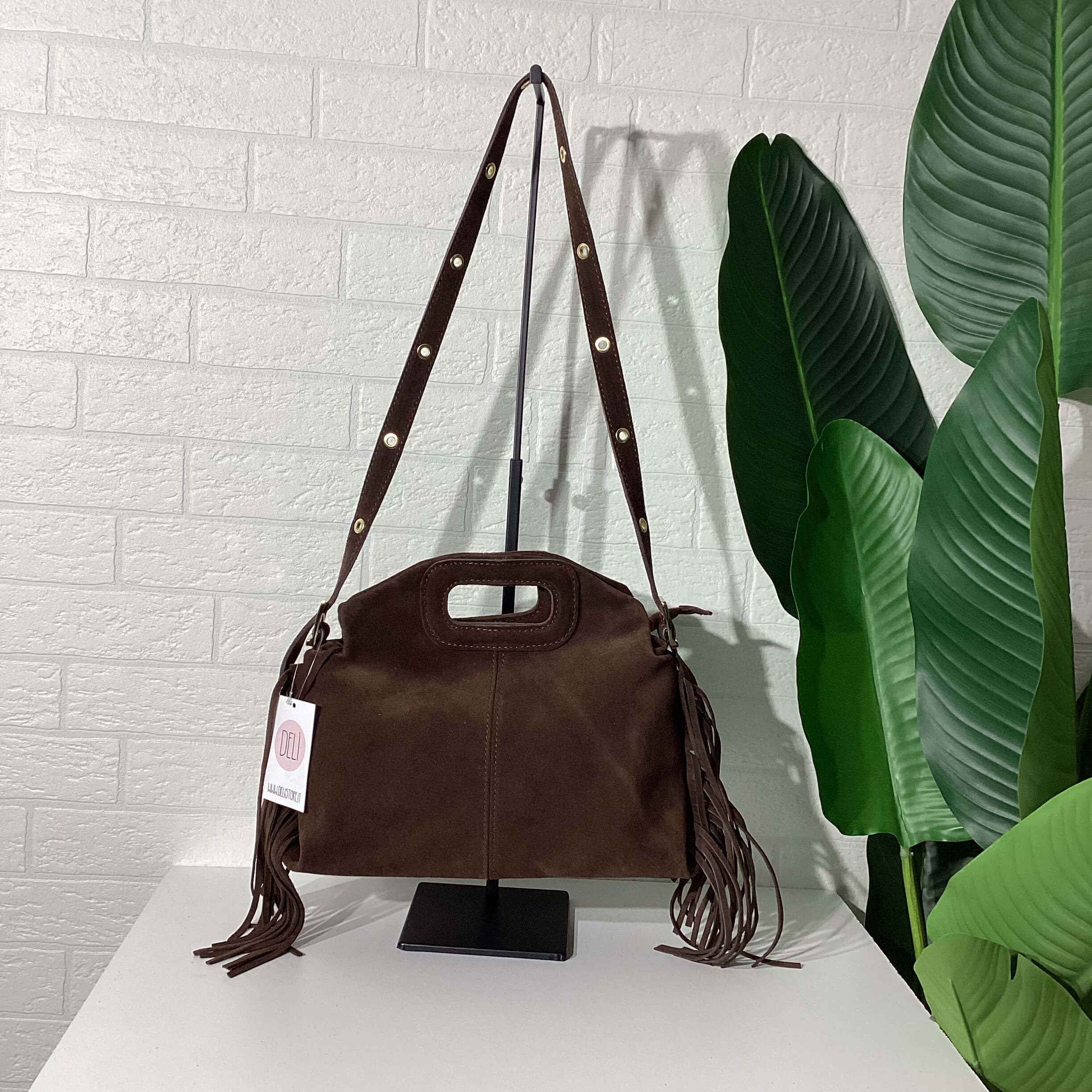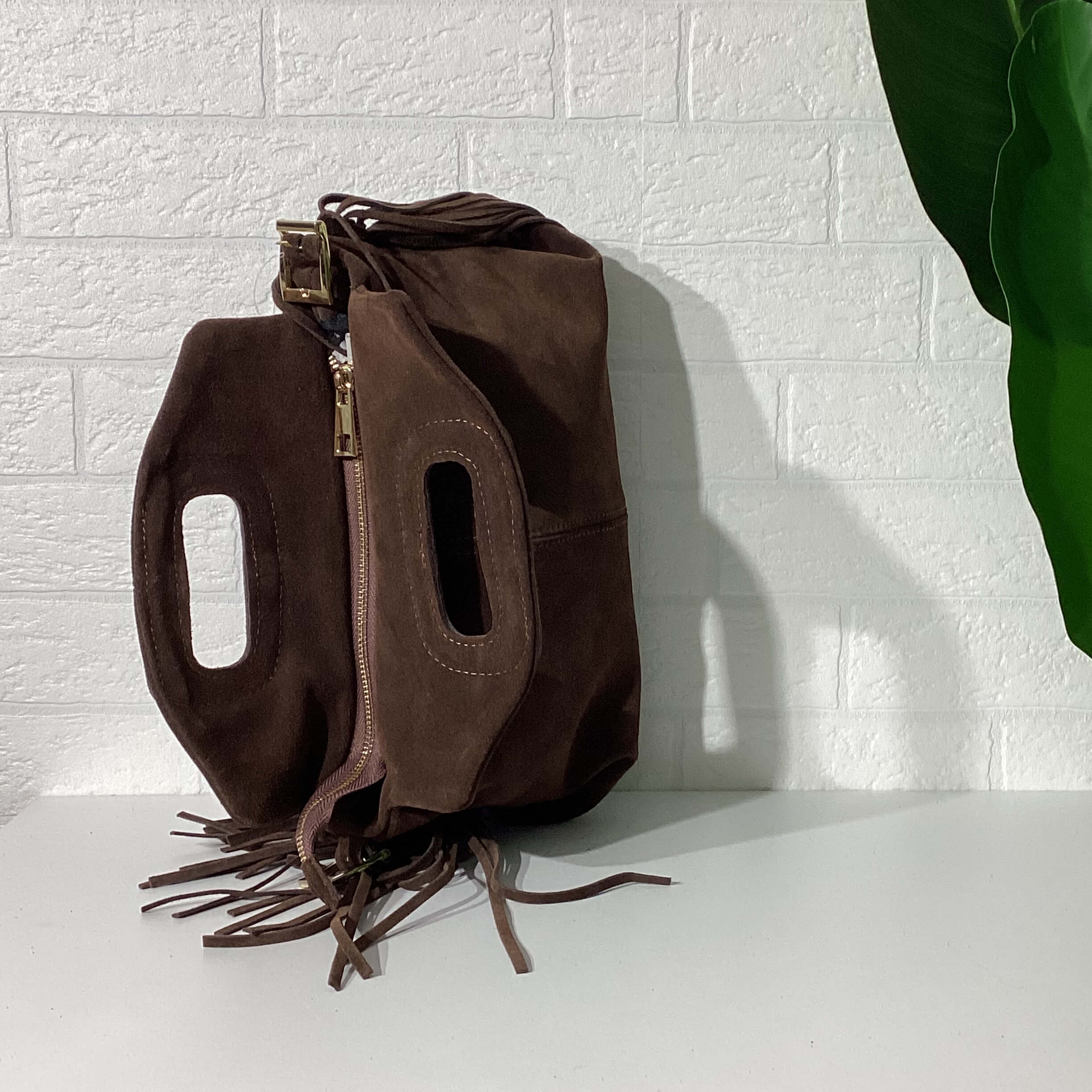 Borsa in vera pelle scamosciata.