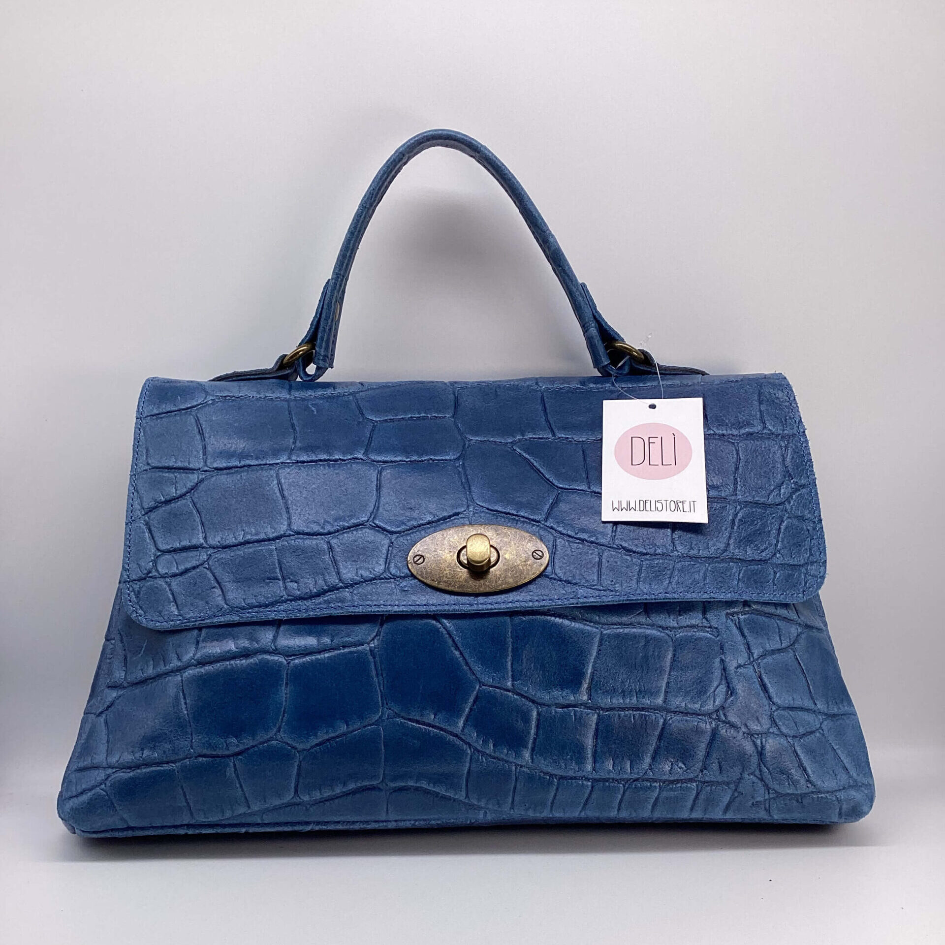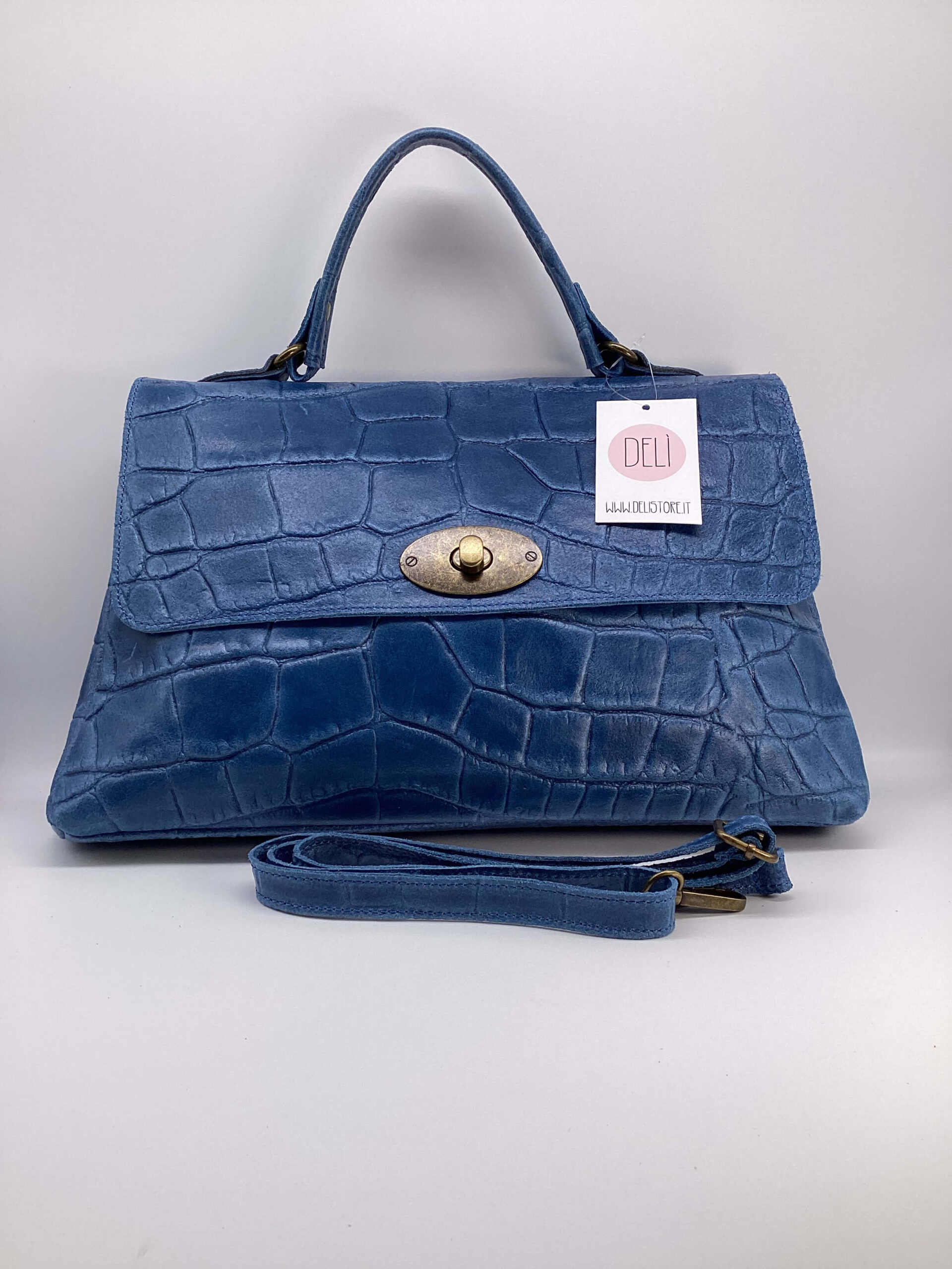 Tracolla regolabile inclusa. Dettagli metallici color oro brunito.