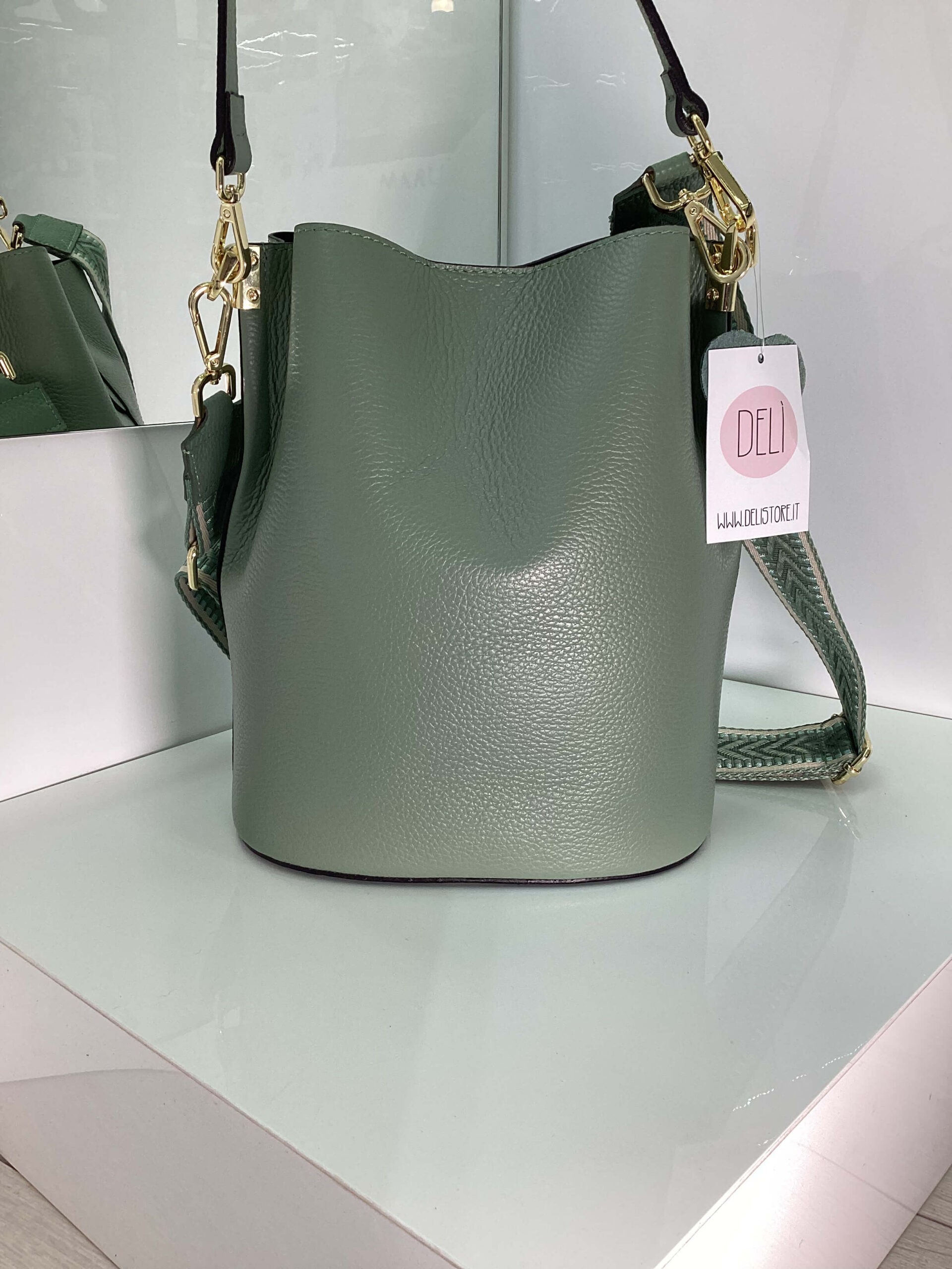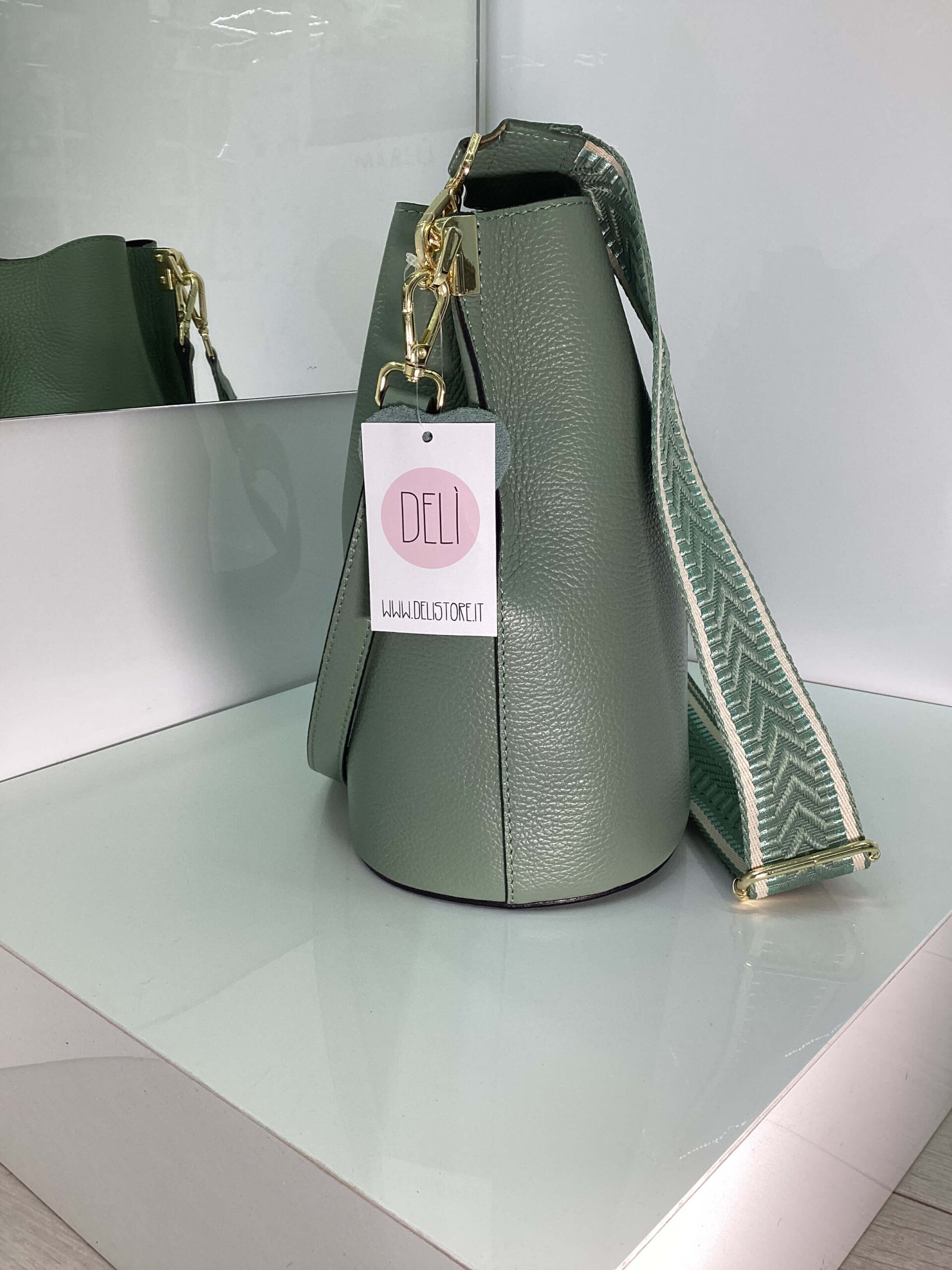 Borsa in vera pelle con manico.