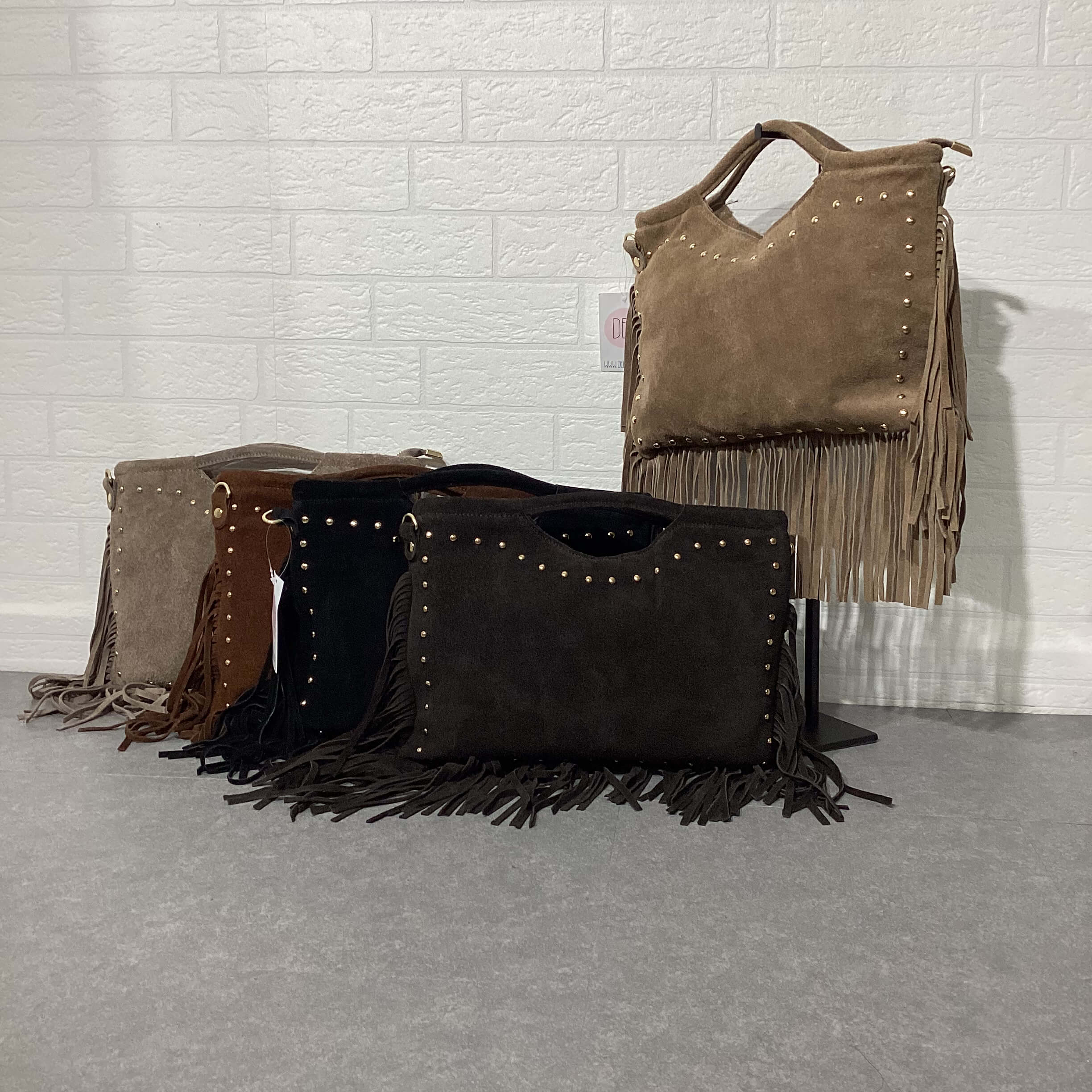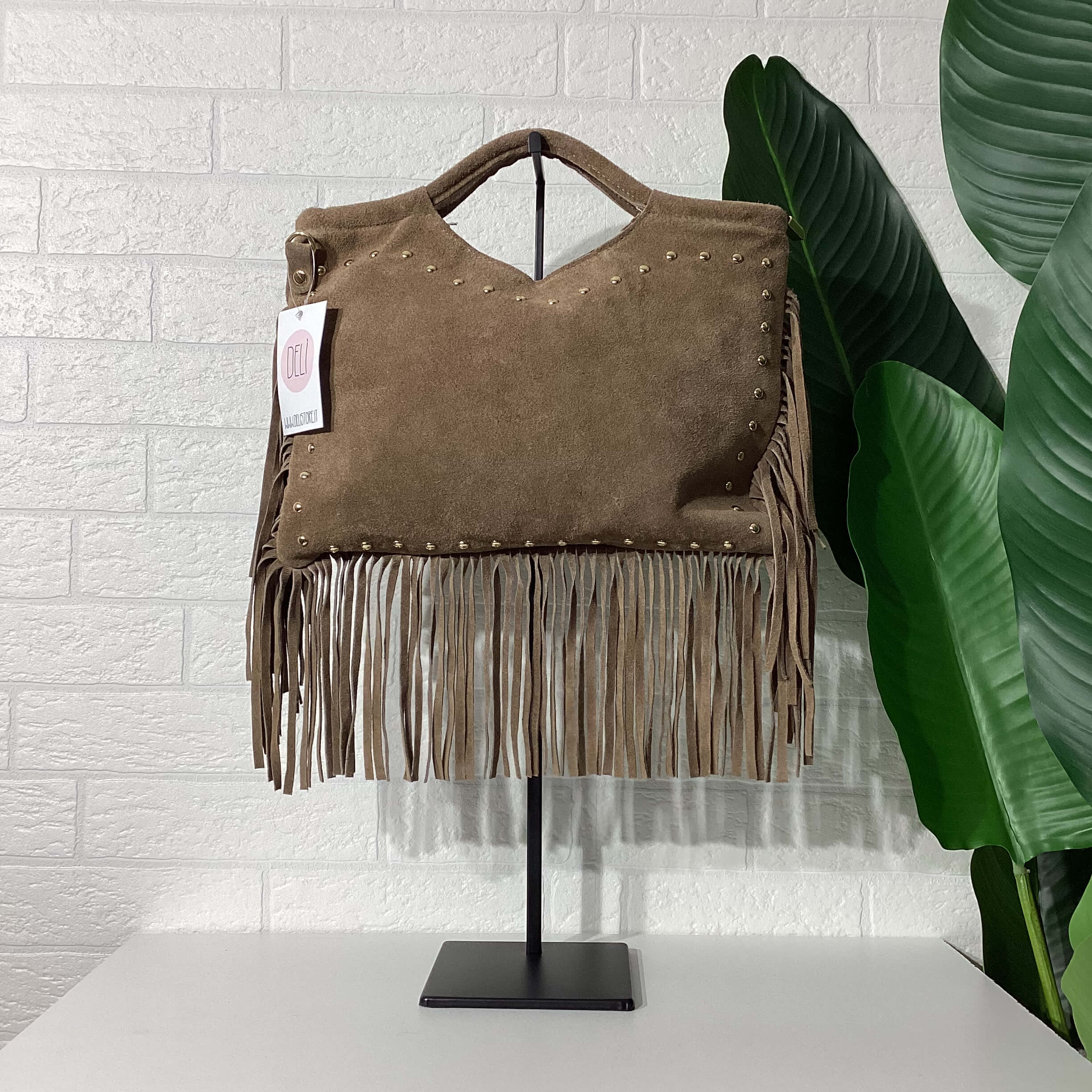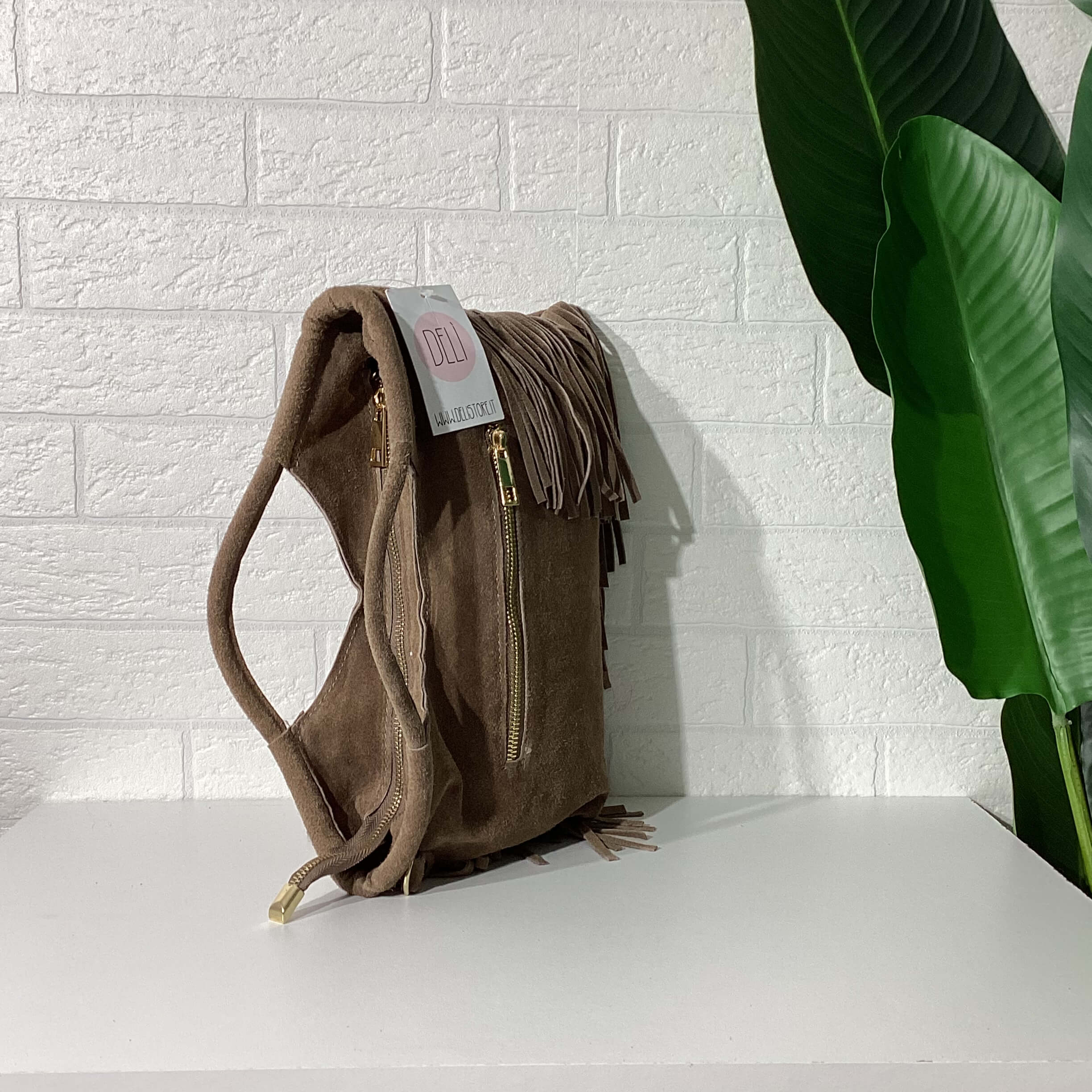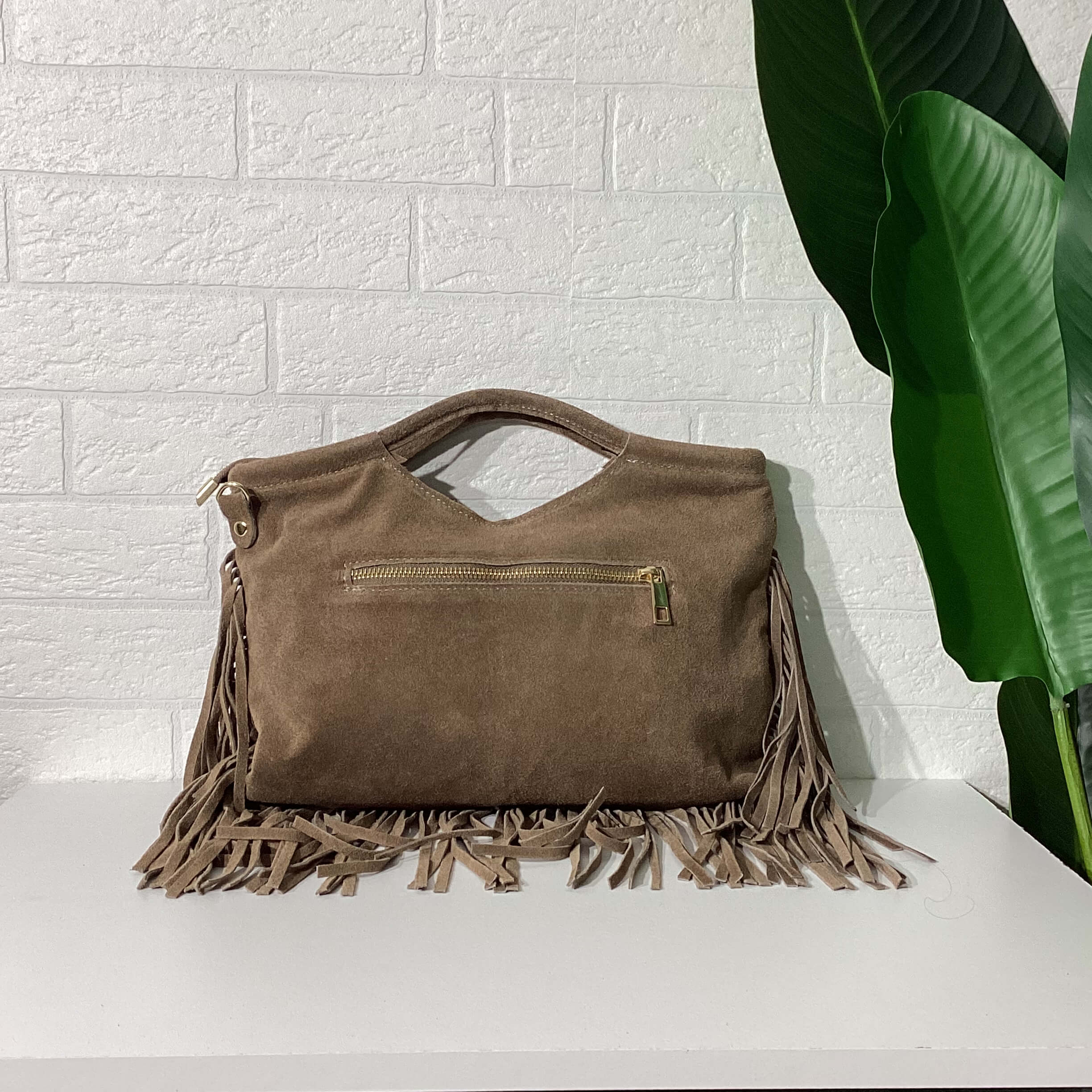 Borsa in vera pelle scamosciata.