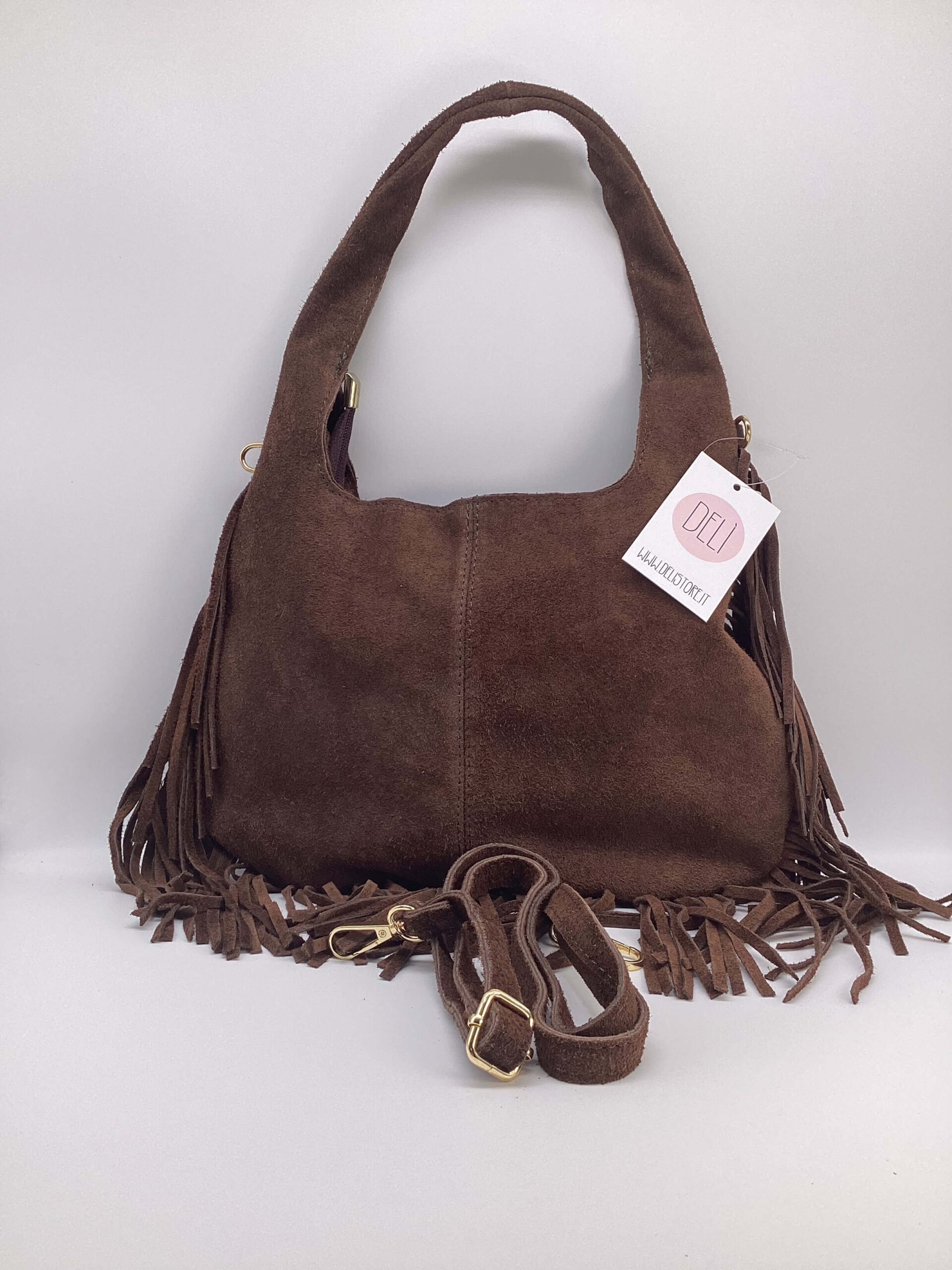 Borsa Paris Frange Camoscio moro