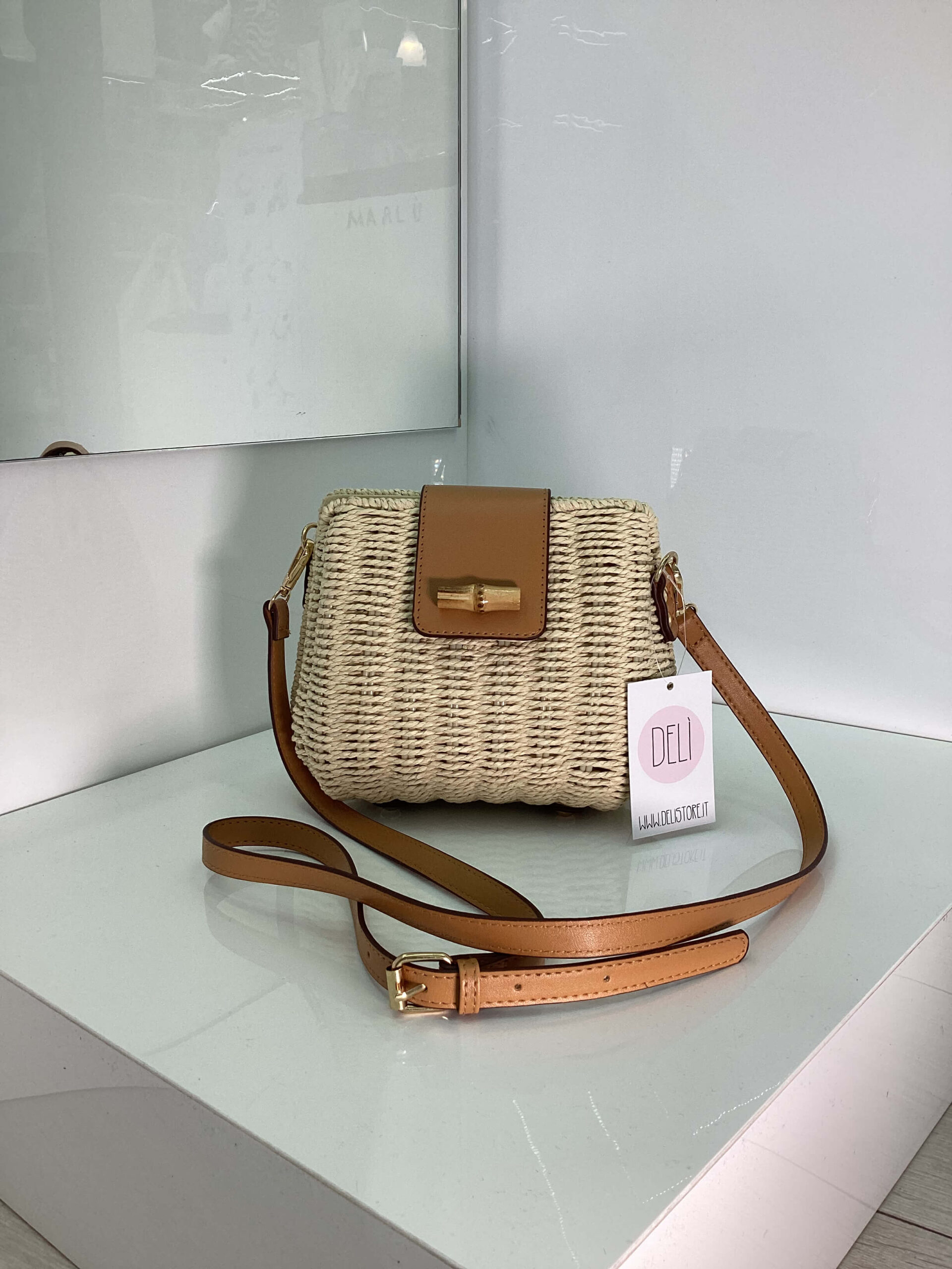 Borsa in ecopelle e rafia.