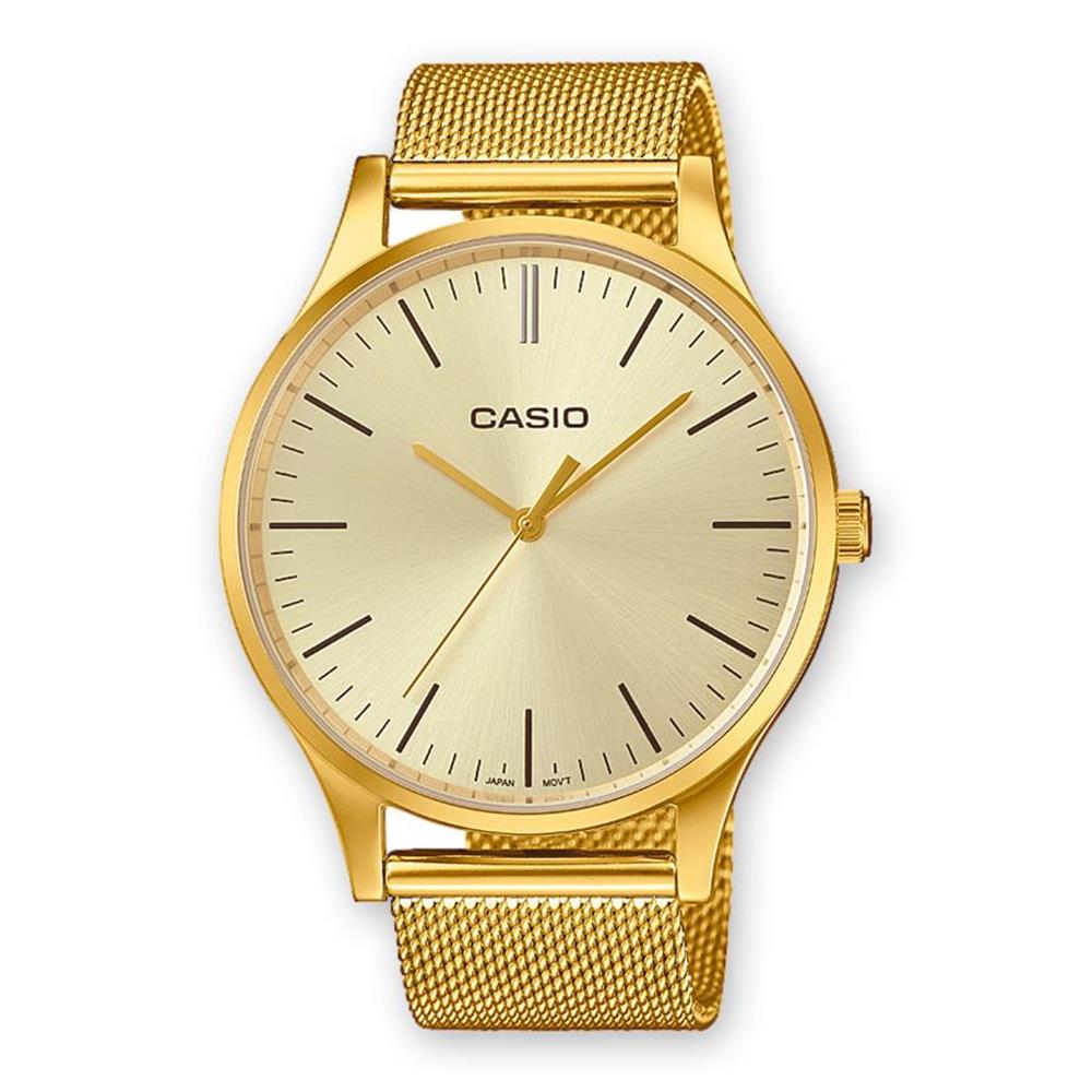 Orologio Casio LTP-E140G-9AEF Cassa in acciaio inox, bracciale in maglia in acciaio inox con chiusura regolabile Vetro minerale Resistente all’acqua Dimensioni: 46,0 mm x 38,0 mm x 7,4 mm Peso: 60g.