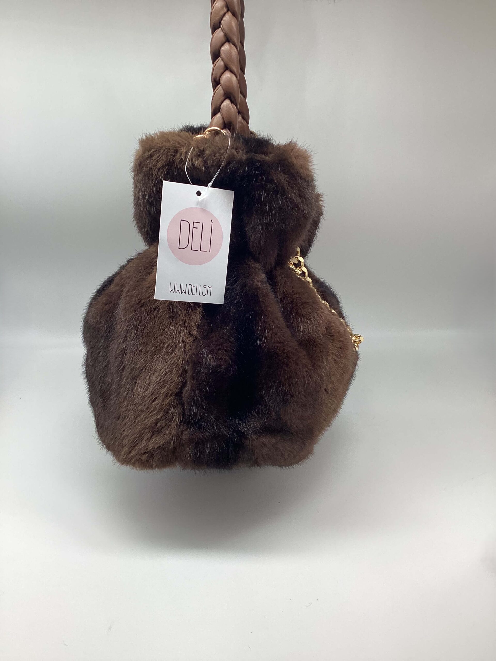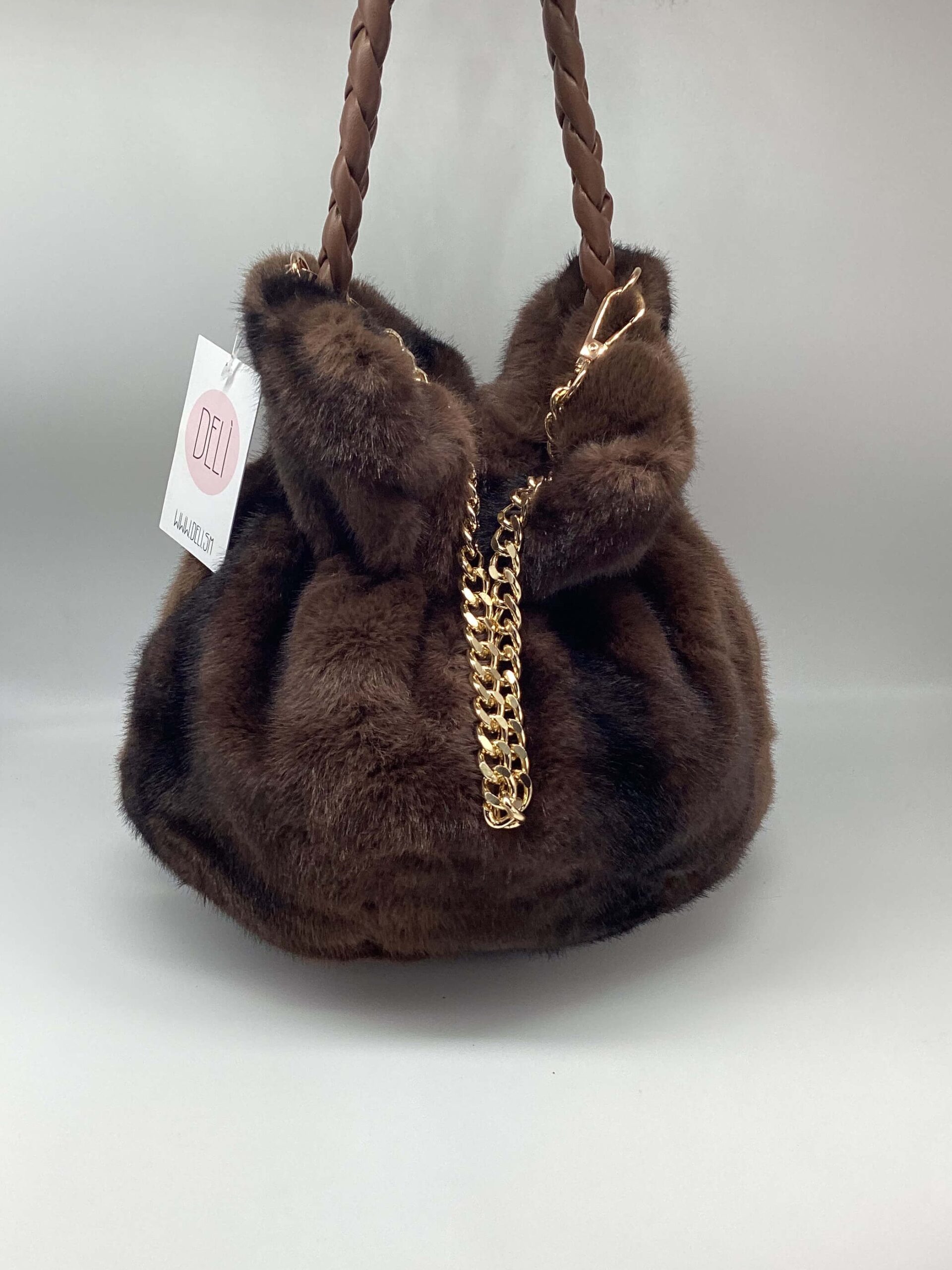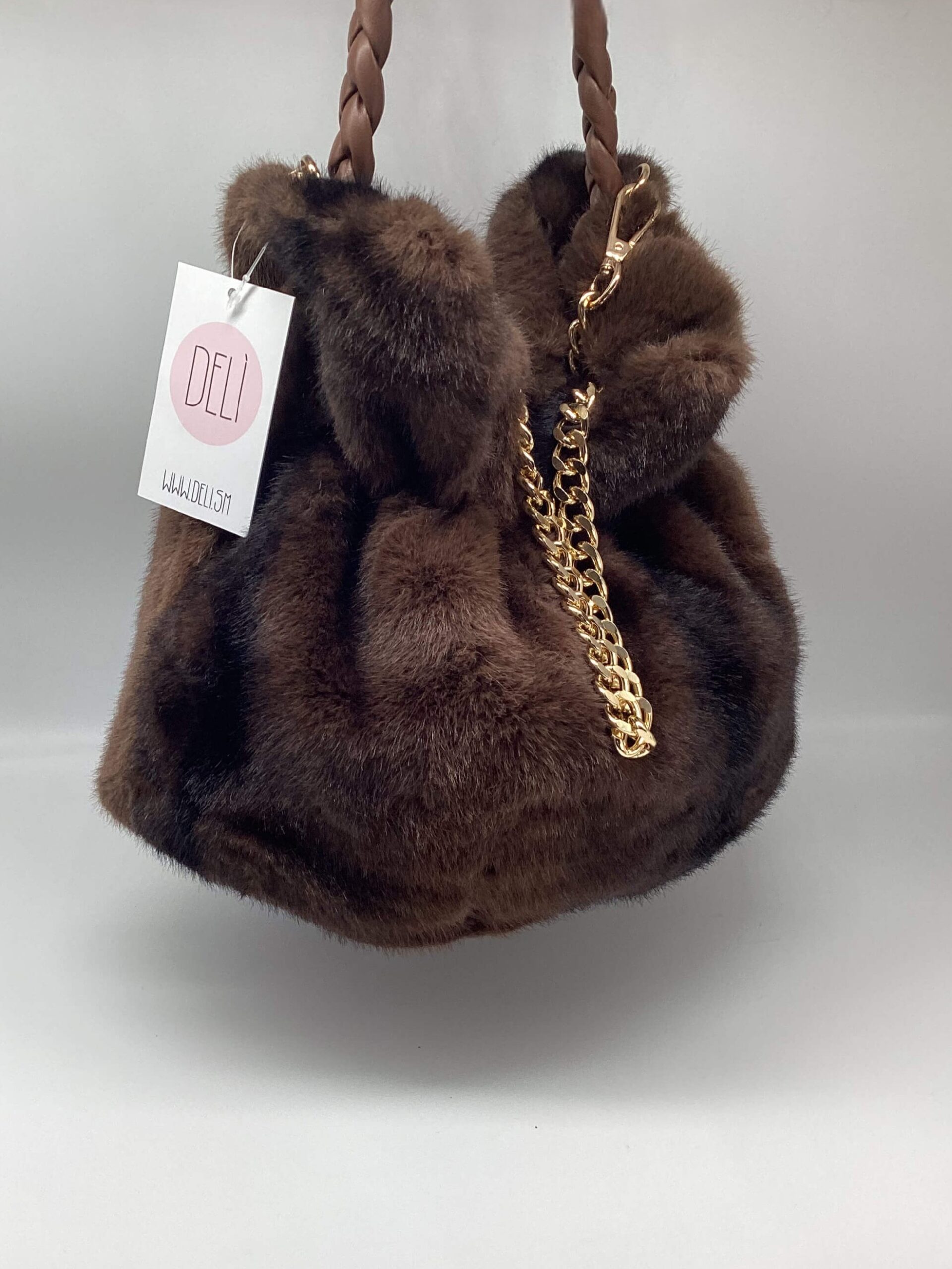 Borsa in eco pelliccia, estremamente morbida. Linee scure verticali.