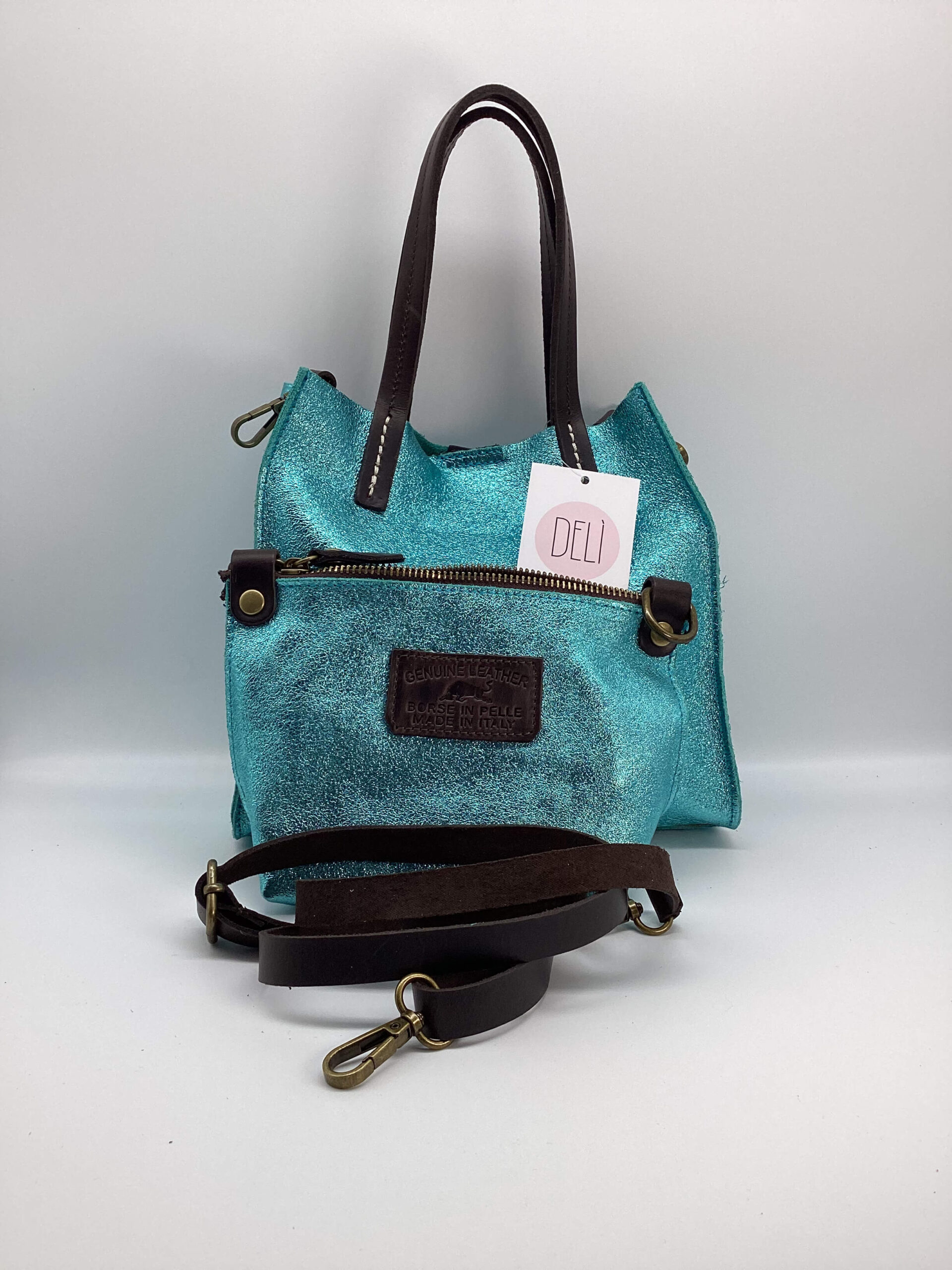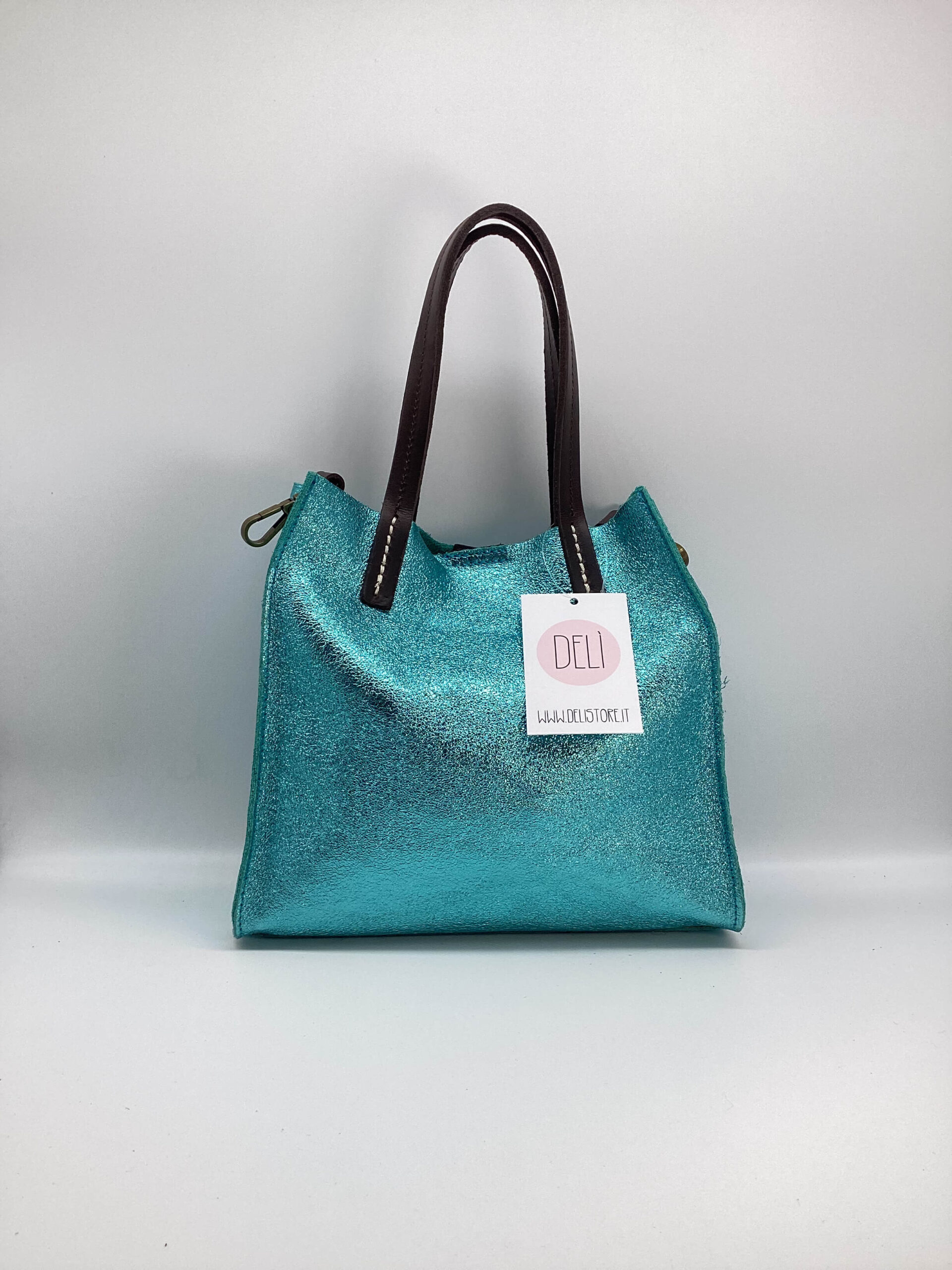 Dotata di tracolla regolabile in pelle, che può essere utilizzata sia per la borsa grande che per la pochette.