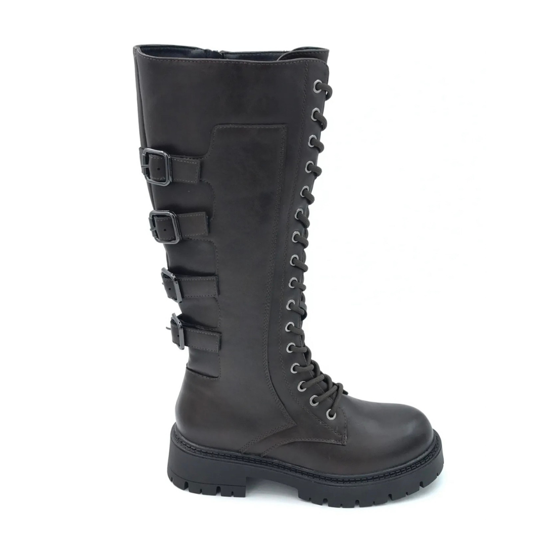 Morbida fodera interna. Suola carrarmato con tacco di 4 cm. Altezza stivale fino sotto al ginocchio.