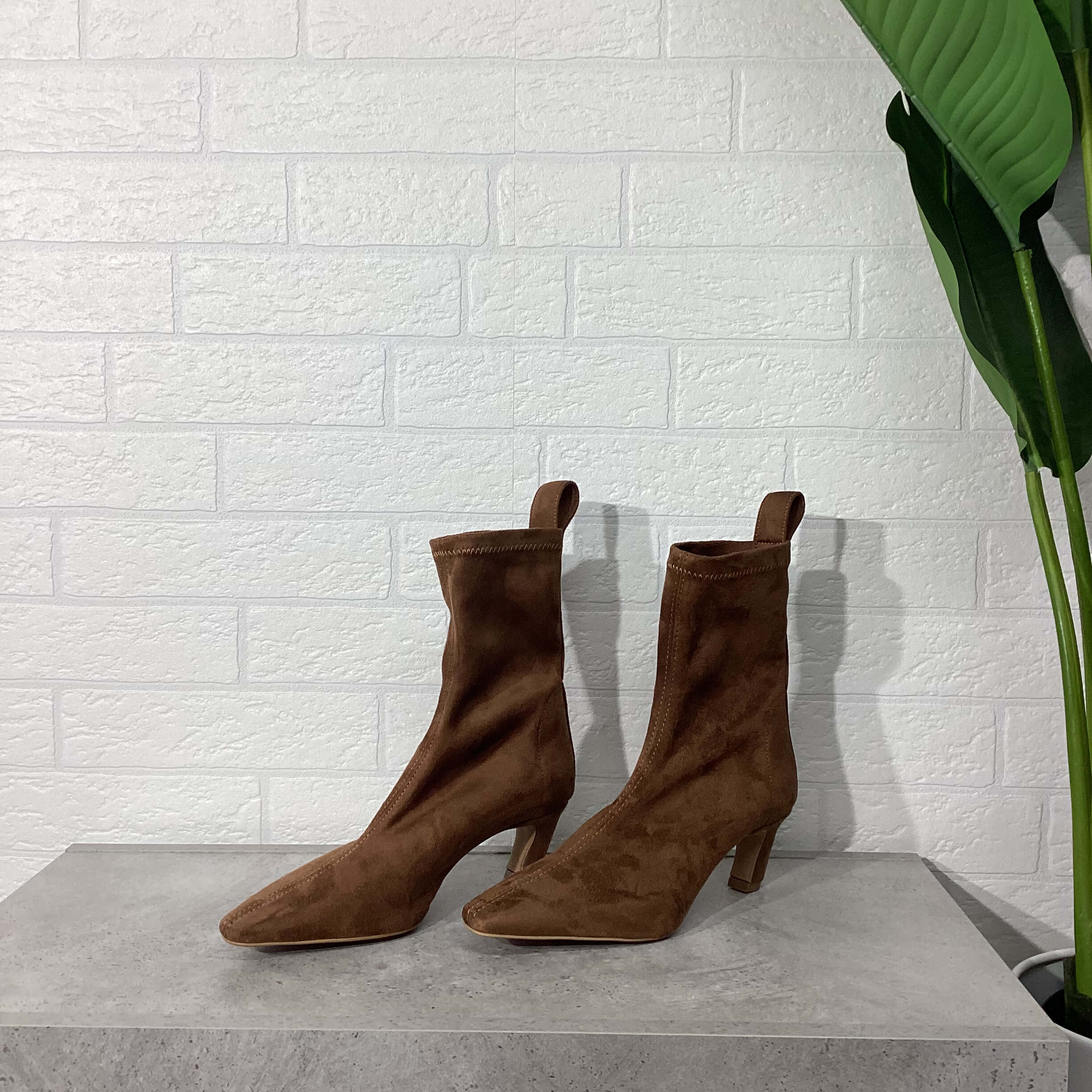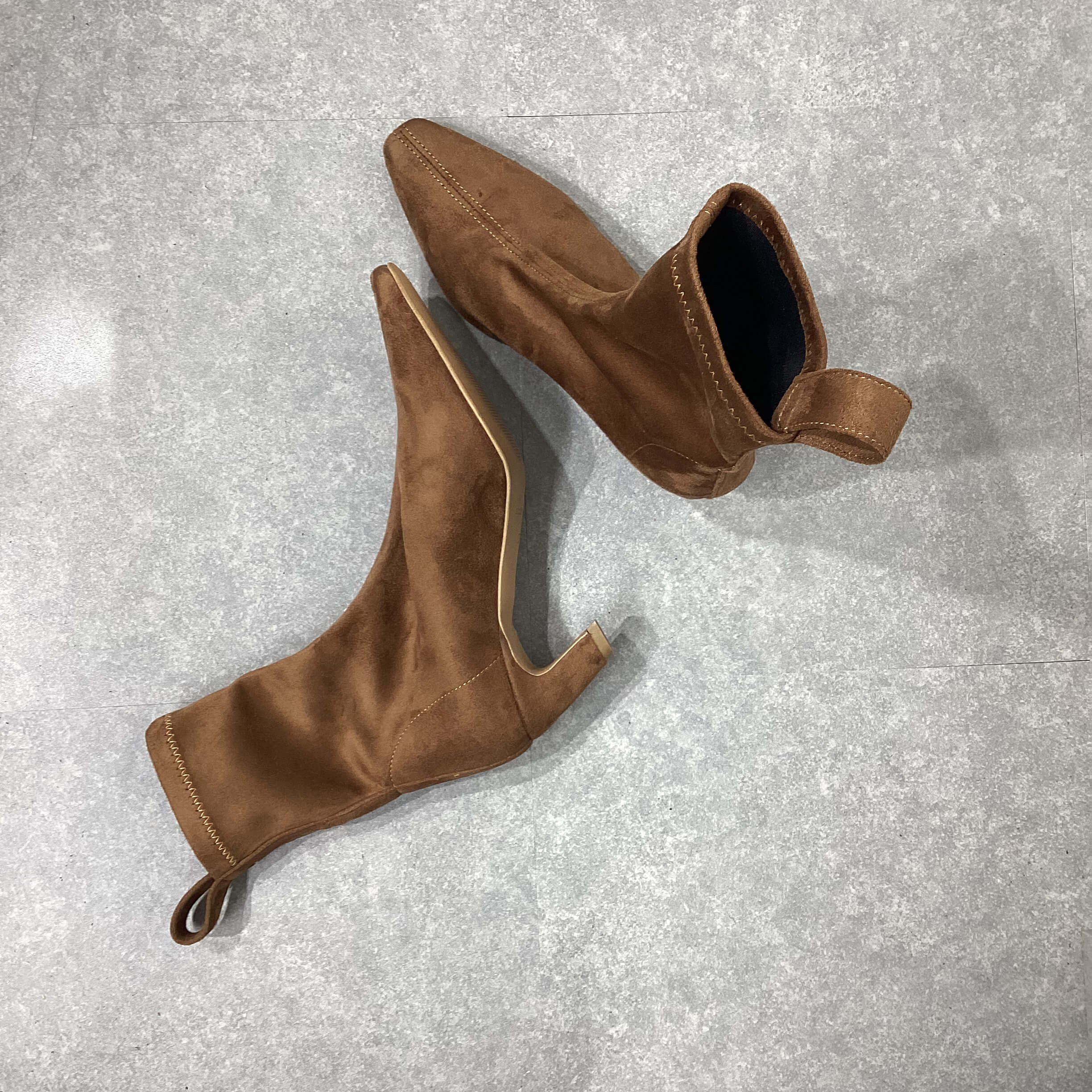 Tronchetto stretch in camoscio, tacco 5 cm.